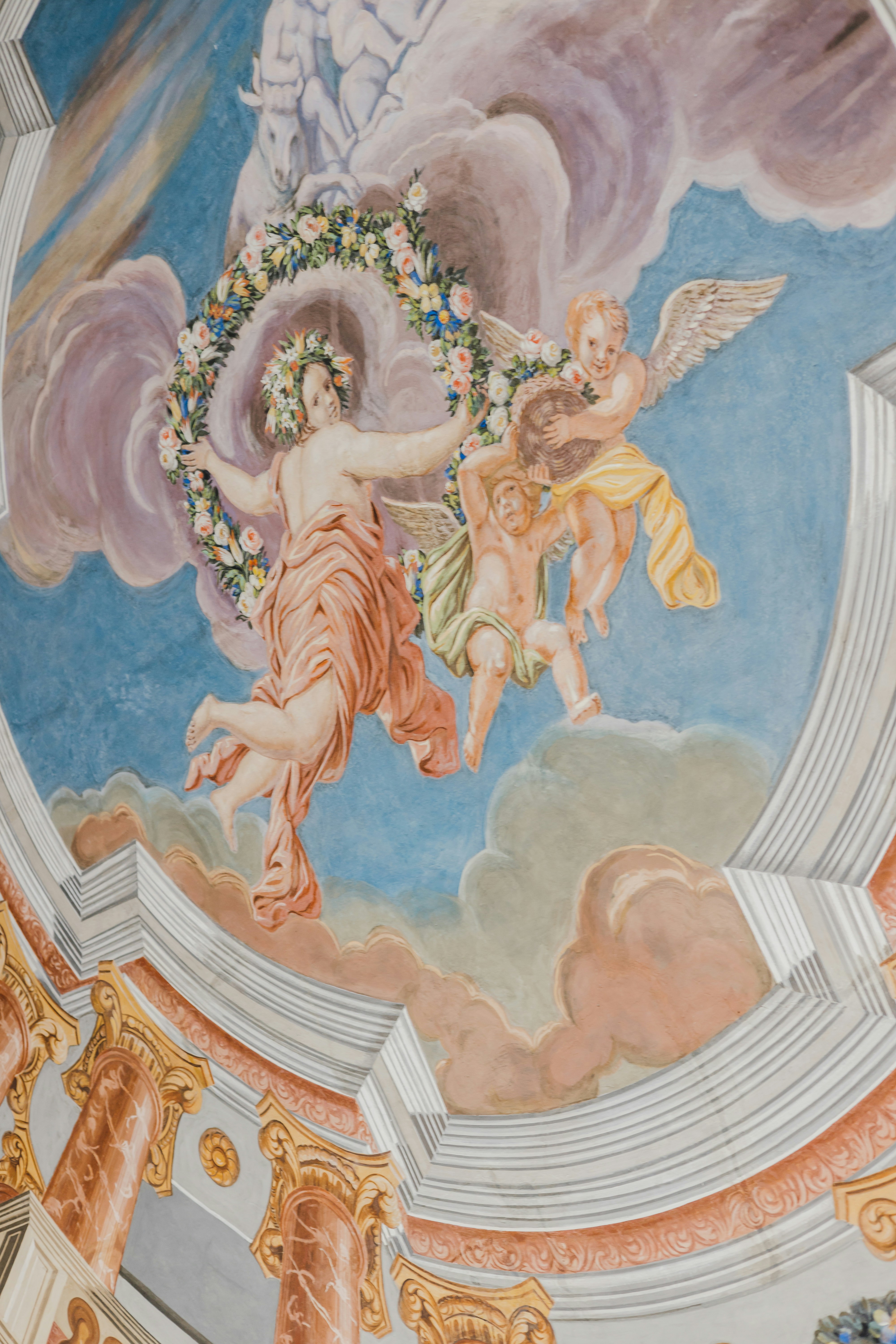 Finto marmo, patine a calce, graffiti decorativi, foliage: ogni tecnica è scelta con cura per rispondere non solo all’estetica, ma alla storia che quello spazio racconta. Il suo lavoro non è mai invasivo, ma si inserisce con rispetto, come un frammento di un racconto più grande.